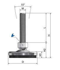 O pé da máquina é ajustável em altura de forma contínua através da rosca (dependendo do comprimento do fuso) e, através do fuso com rolamento de esferas, num ângulo de inclinação de aproximadamente 7,5° em cada direção (aproximadamente 15° no total). Isto garante um alinhamento estável e preciso da máquina.